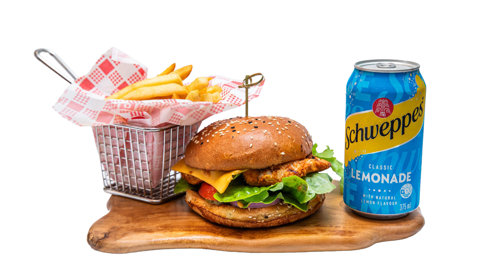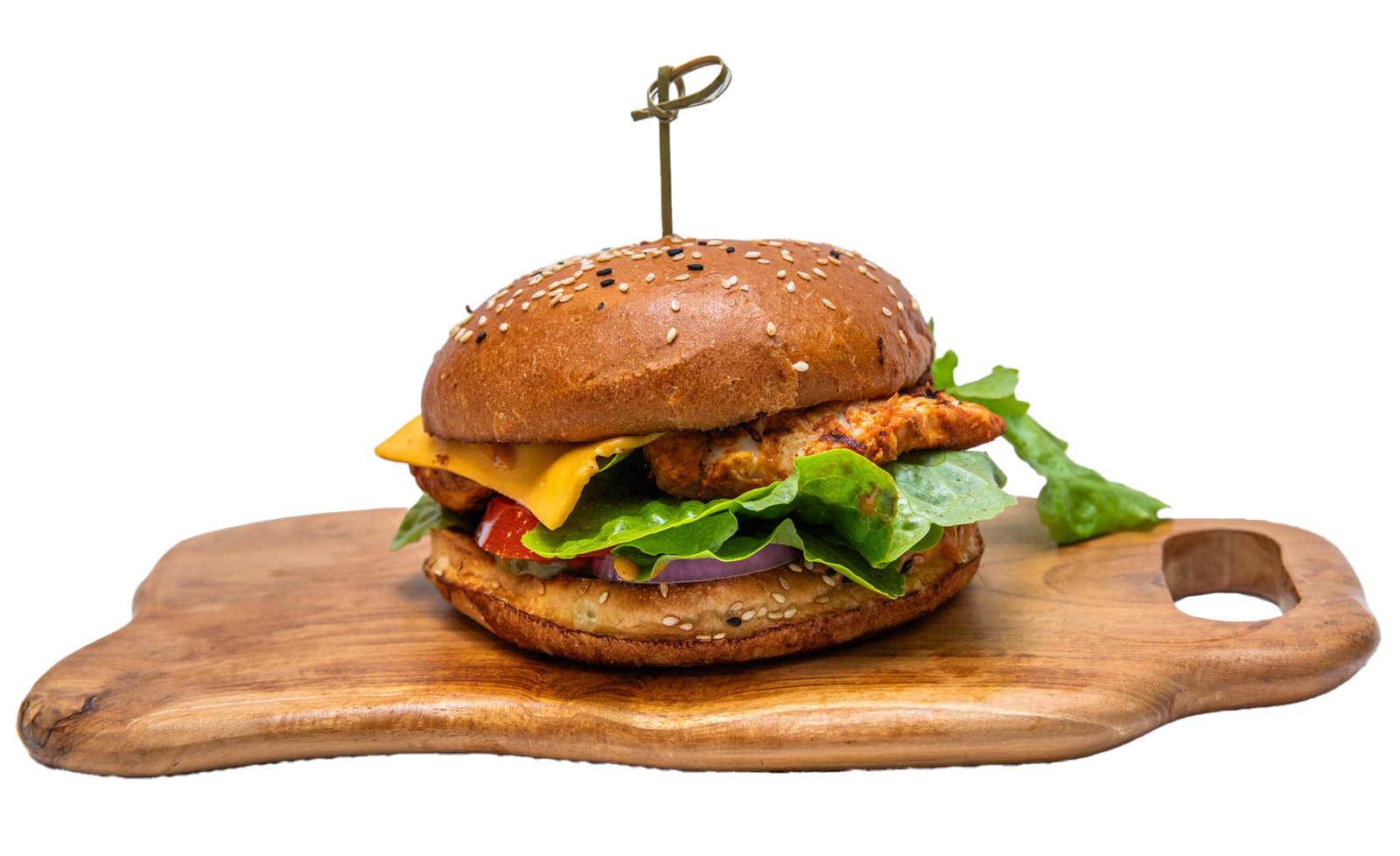 Char Grilled Smokey Chicken Breast | Red Onion Rings American Crinkle Cut Pickles | Butter leaf lettuce | Tomato | Peri Peri Sauce